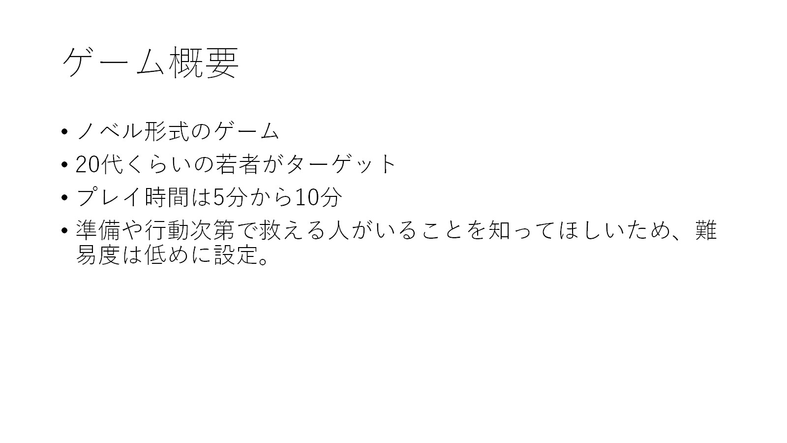 準備や行動次第で救える人がいることを知ってほしいため、難易度は低めに設定。
